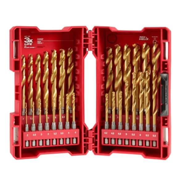 Milwaukee 48894862 29 Piece 2mm-13mm Metric 1/4-Hex Red SHOCKWAVE HELIX Titanium Drill Bit Set