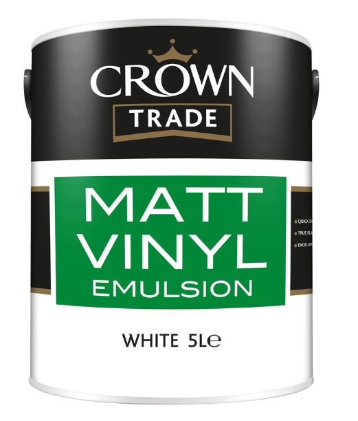 Premium-quality paint for a professional job, every time. Use this Crown Trade Vinyl Matt emulsion on any interior walls or ceilings where a flat, non-reflective finish is required.