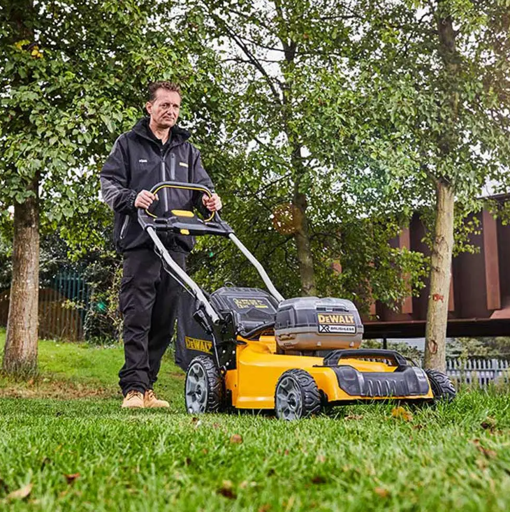 Dewalt’s powerful new DCMW564 Cordless Mower features a 2 x 18V (36V Output) brushless motor making it ideal for tackling medium to large sized applications, achieving up to 800m² on a single charge. With 5 adjustable height settings and twin bearings on each wheel, the DCMW564 mower achieves a clean and accurate cut without exerting the user. The 2X 18V cordless mower is packed with features to make it accurate and convenient to use.