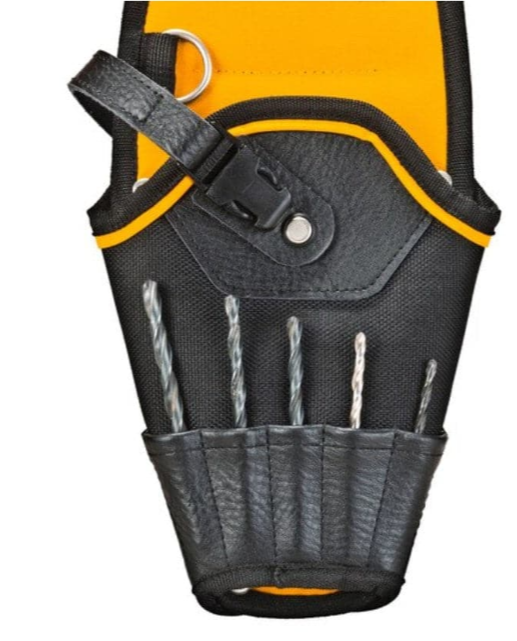 • Adjustable strap and quick-release buckle holds drill securely in place