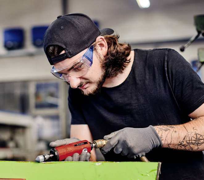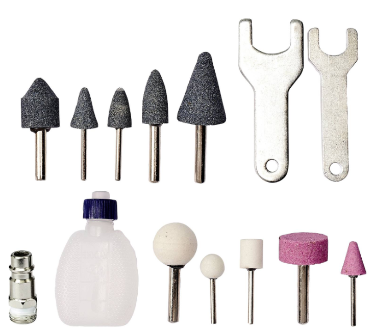 With the Einhell compressed air bar grinder TC-PP 220, the ambitious DIY enthusiast has a powerful tool at hand, whether in the home, workshop or garage. With a speed of up to 22,000 min^-1 it supports precisely and powerfully when grinding, polishing, engraving or deburring. The rod grinder from Einhell delivers best performance from an inner diameter of 9 mm. The rubberized grip allows comfortable and safe working. The compressed air bar grinder is optimized and suitable for one-handed use. The safety release lever prevents unintentional starting. The 10 grinding pins available in the accessories offer numerous application possibilities. The equipment also includes 1 oil bottle, 1 plug nipple and 2 clamping keys. Supplied in a practical transport and storage case.