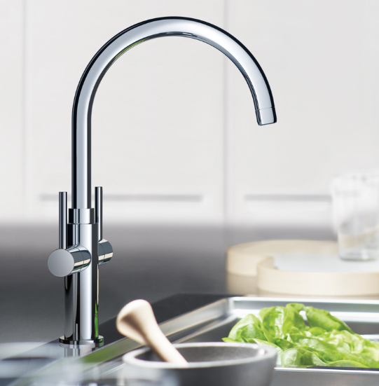 The Grohe Ambi dual lever mixer tap combines classic looks with state of the art technology, for style and practicality in the kitchen. The swivelling spout of the Grohe Ambi kitchen tap can be set at 150°, 360° or locked in the home position. Twin lever operation with easy to use handles.