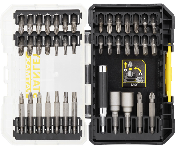 Connectable case allows multiple sets to be stacked and locked together. Compatible with the Pro-Stack Caddy (39322) to hold all accessory sets in place. Easy screwdriver bit removal and retention for user convenience. Range of screwdriver bits for everyday use.