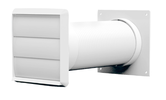 • Includes 1 m of 100 mm flexible PVC hose for short through-the-wall installations